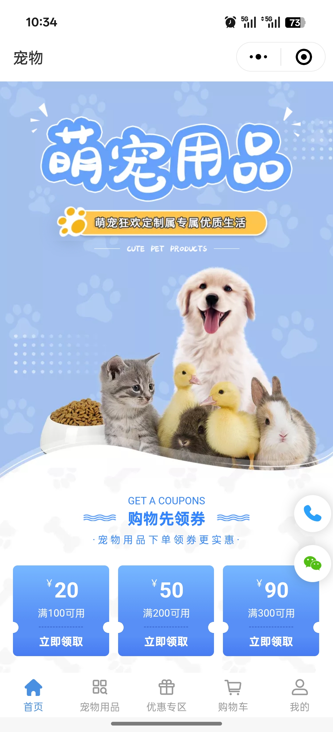 场景化导航:按宠物品种/生命周期(幼犬、老年猫)分类,结合LBS推送附近急缺商品(如暴雨天推荐凉感衣)。