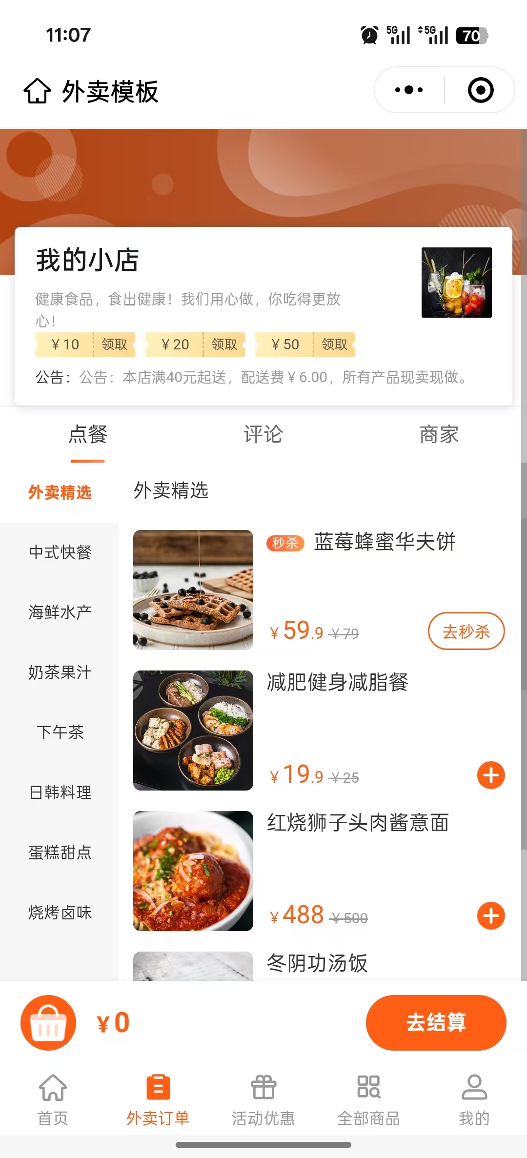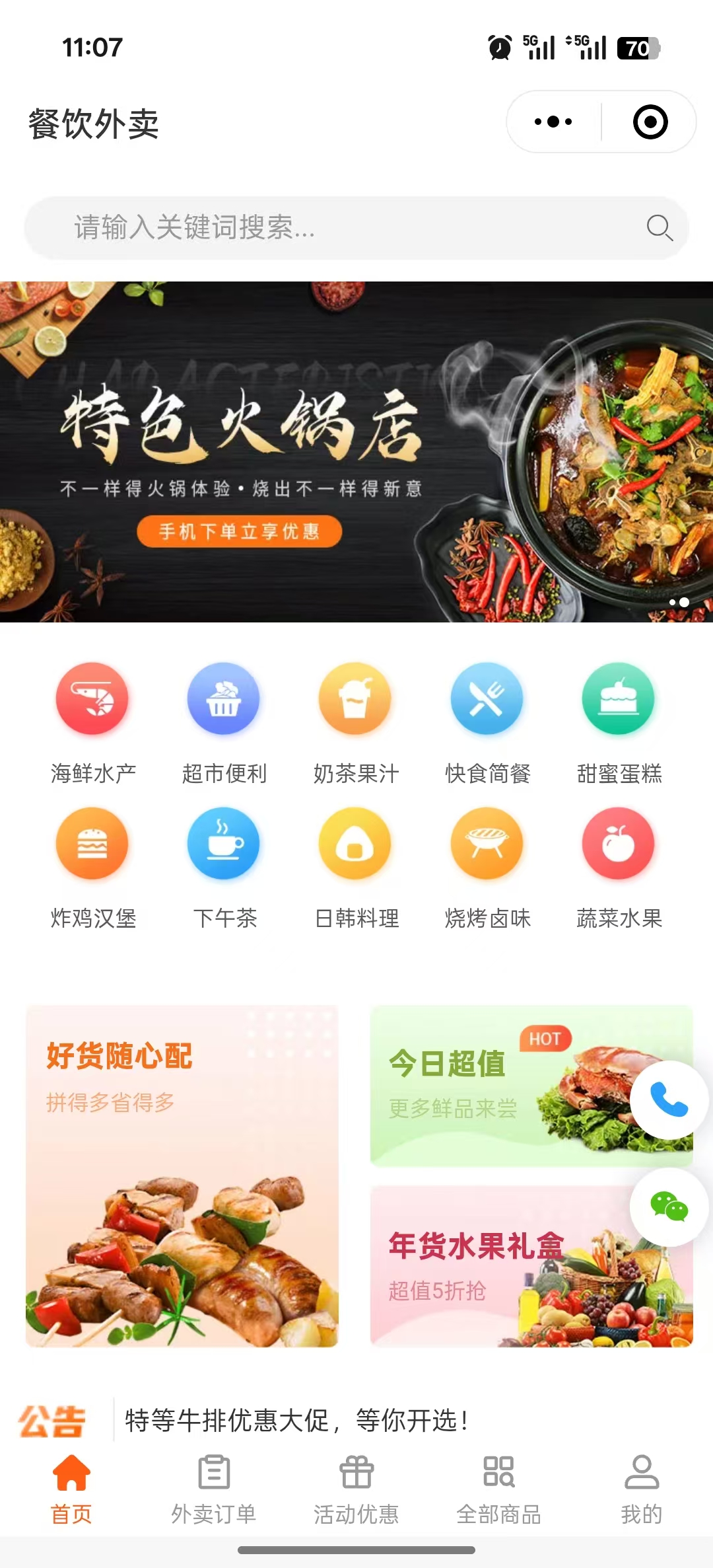 单一商户的餐饮外卖小程序功能方案,聚焦在餐品丰富性展示与高效转化路径。